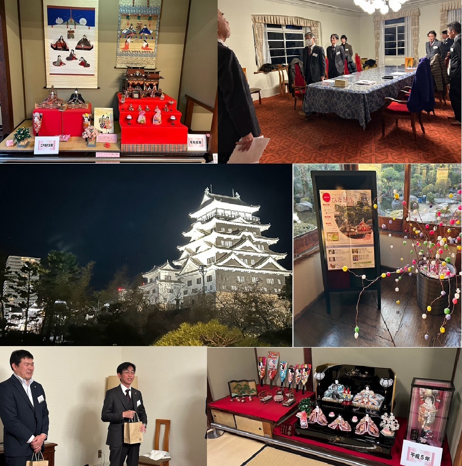 福山城を眺めるのに最高な趣のある会場にて雛人形展(江戸時代~令和まで)を観賞し、後に例会を行いました。